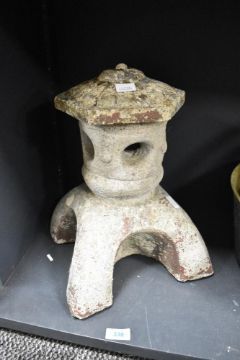 A oriental composite lantern / ornament, having hexagonal lid and raised on pagoda style legs, h33cm