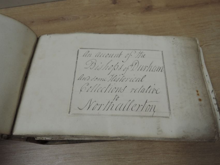 Manuscript. An Account of the Bishops of Durham and some Historical Collections Relative to Northallerton. No date, circa late Nineteenth Century. Hand-written. Possibly connected to the Conyers-Surtees family of Mainsforth Hall, Co. Durham. Vellum-bound. Unique item. (1)