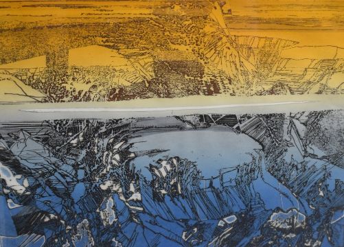 Nils Burwitz (German b.1940) printers proof 'Fish River Canyon' abstract landscape, signed and dated 70 to margin in pencil along with personal dedication, within a broad card mount and slender modern black frame, under glass 53cm x 66cm & 81cm x 90cm overall.