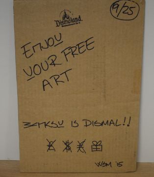 In the style of Banksy (British, b.1974) limited edition graffiti stencil on cardboard, 'Dismaland 2015' Road Drill Rat, rat with Jackhammer, edition 9/25, signed with stamp lower right and reverse, unframed. 34cm x 23cm overall.