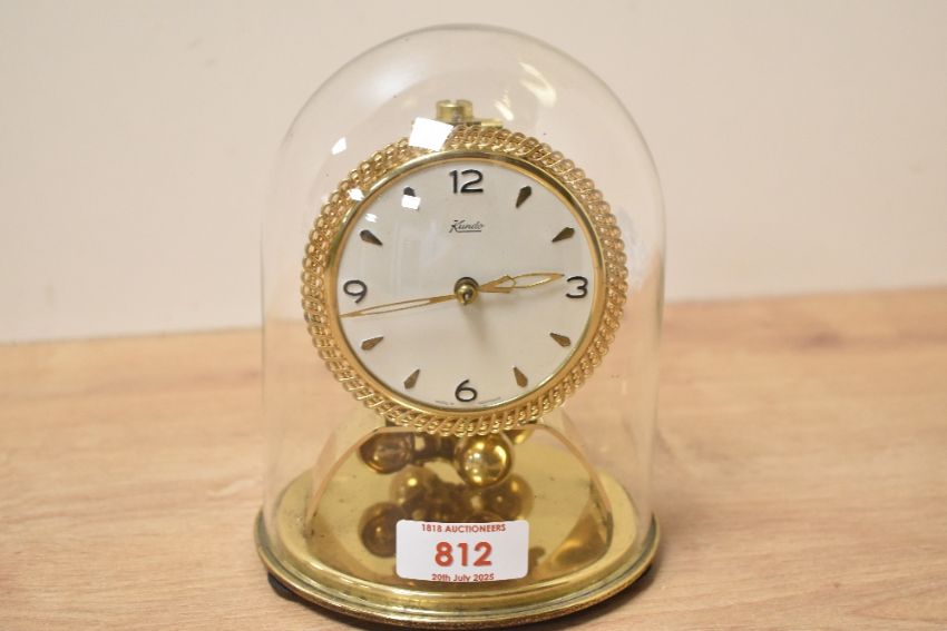 A mid - century 'Kundo' 400 day brass mantel clock with glass dome, h16