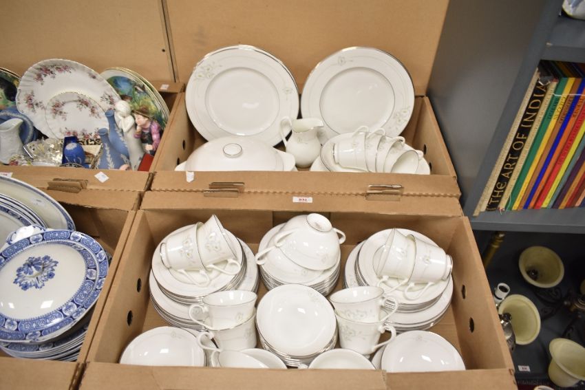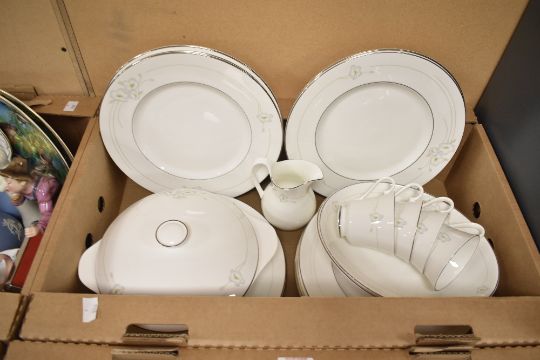 A Royal Doulton Mystique pattern dinner service, decorated with floral patterns on a white glazed ground, to include lidded tureen, soup bowls, plates ect, dishwasher safe (76)