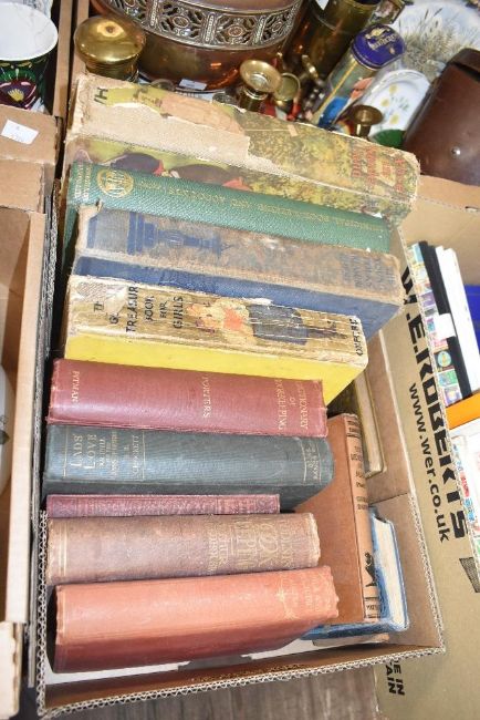 A cased set of silver plated coffee pean teaspoons sold along with a collection of assorted books including titles on book keeping and Jane Austin - Pride and Prejudice etc.
