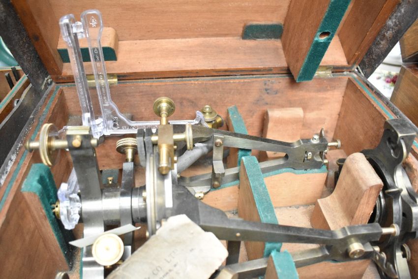 A 1950s Halden & Co Theodolite, in two fitted wooden cases, within leather carrier, serial number 30452, the labels dated 15-1-51