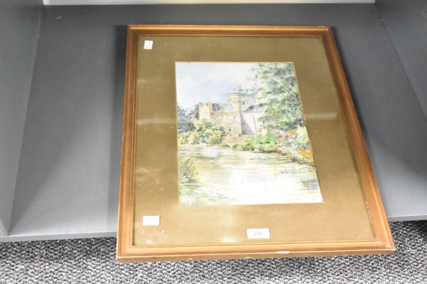 An early 20th century English School watercolour, manor house with pond, unsigned, within a gilt card mount and moulded gilt frame, under glass 34cm x 24cm & 54.5cm x 44.5cm overall.