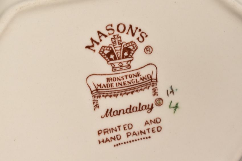 A modern table lamp decorated in the Chinese taste, h40cm, sold together with a similar lamp and a Mason's 'Mandalay' pattern dish ect (6)