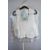 Four 1950s ladies summer party tops comprising three crochet styles with various cuts and details including a waistcoat with teardrop pearl ornamentation, a button down with queen-anne neckline, and a shift with button down back, along with a blue sheer pleated shift top with pearl cutout neckline detail, along with two pairs of matching gloves in crochet and sheer blue to match the tops, and a plaid blazer. Sizes M-L.