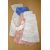 Three vintage baby girl's dresses. A tiered smock with a chambray upper part and and pink floral Liberty fabric skirt. A white cotton cheesecloth style dress with orange and blue polka dots. A cream cotton square neck newborn's dress with intricate broderie, needle work and embroidery. Along with a detachable peter-pan cotton collar separate, scalloped edged with red berry embroidery, button missing.