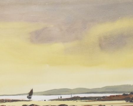 Desmond Turner (Irish 1923-2011) watercolour, untitled but thought to be County Clare, signed and dated 91 lower right, within a card mount and moulded frame, under glass 34cm x 43cm & 52cm x 60.5cm overall.