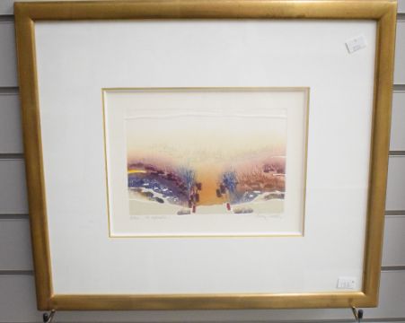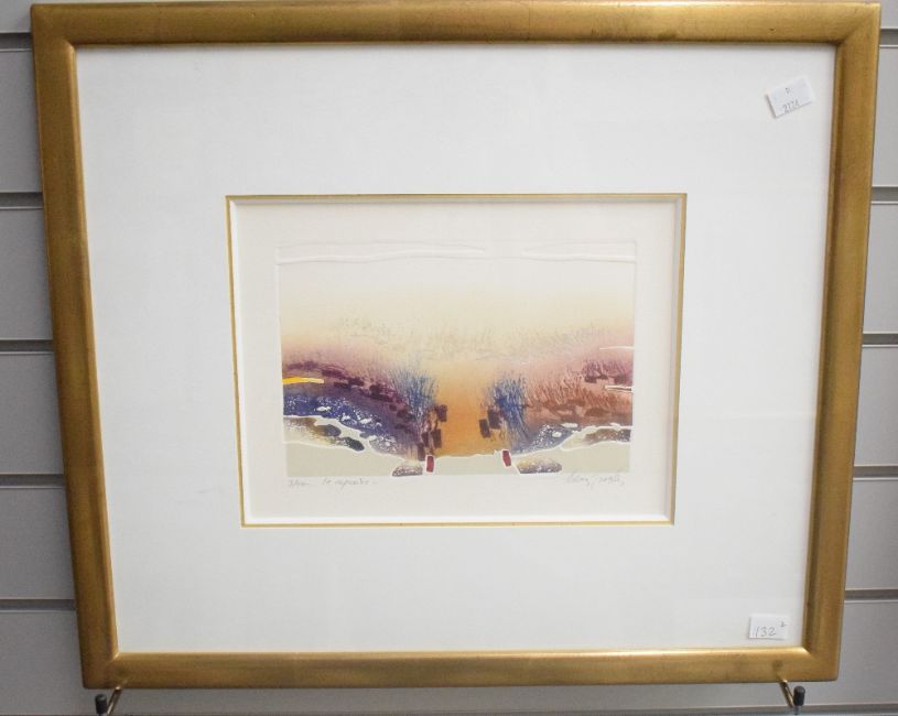 After Francis Mean (Belgian b.1952) two limited edition colour prints, entitled Le Repaire and Le Tombillon, signed, entitled and numbered 3/40 and 2/40 respectively, within broad gilt edged card mounts and gilt frames under glass 21cm x 28cm & 45cm x 52.5cm overall.