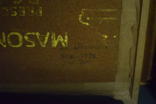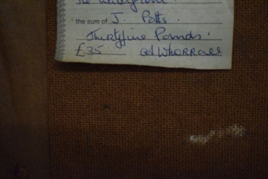 Jean Potts (British 20th century) 1970's oil on board 'The Waterfront' abstract composition, unsigned, entitled with attribution and date 1974 verso, 44.5cm x 50cm & 49cm x 54cm overall.