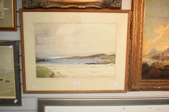 William Heaton Cooper (British 1903-1995) watercolour 'Approaching Storm - Sutherland' pleasing Scottish coastal scene, signed lower right, within a washline card mount and moulded oak frame, under glass 37.5cm x 55cm & 58cm x 74cm overall.