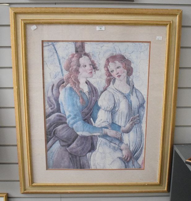 French school poster from MDI editions late 20th Century, 'Francis I and his Court' within red frame under plexiglass. 63.5cm x 85.5cm, 71cm x 94cm overall.
