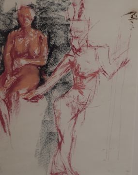 Artist unknown, pastels on paper, striking sketch of nude figures, unsigned, within white card mount and grey painted frame, under glass 68cm x 48cm & 92cm x 71cm overall.