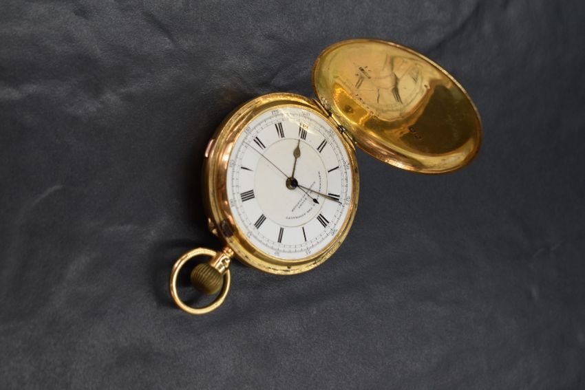 An 18ct gold top wound full hunter pocket watch, engraved 'WBW' to the case, the white dial marked 'W.T. Story Barrow-In-Furness Watchmaker to the Admiralty', having Roman numerals and external dial, marked 18 with hallmarks, 105.7g. Lacking glass cover to dial, ticking when wound but not tested for functionality