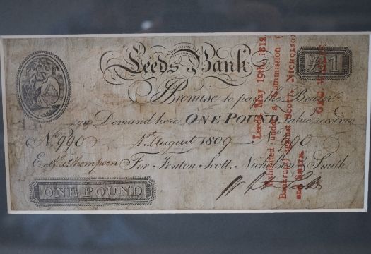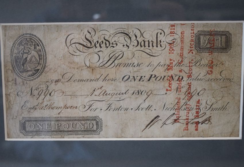 One Pound Bank note, Leeds Commercial Bank (fenton Scott Nicholson and Smith) 1st August 1809 Serial Number 990, in card mount, framed and glazed