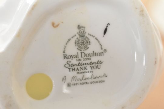 Three Royal Doulton bone china figurines comprising 'Goody Two Shoes' HN 2037, 'Janine' HN 2461 and 'Thank You' HN 3390 sold together with a Coalport bone china limited edition figurine 'Louisa at Ascot' number 10775/12500.