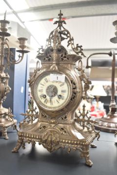 A 19th century 3 piece mantel clock with candelabras, h39cm