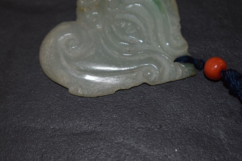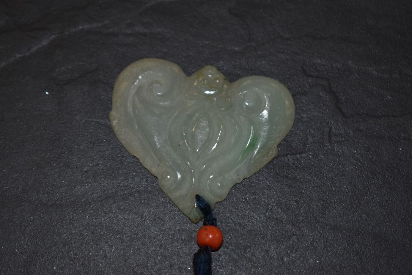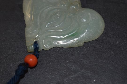 A Chinese carved jade or hardstone pendant / amulet of heart form, h4.5cm