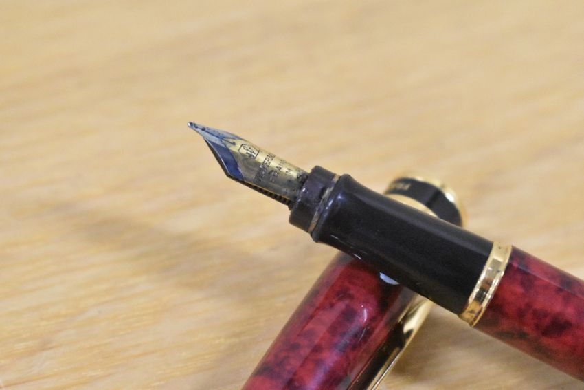A Waterman Expert cartridge/ converter fill fountain pen in Flame Red laque having Waterman France M nib