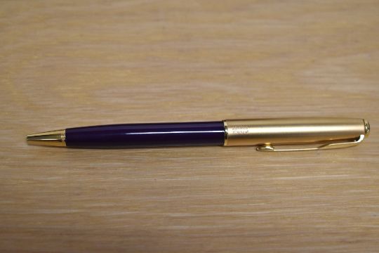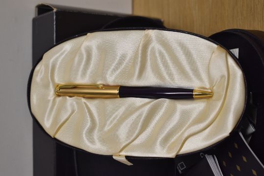 A boxed Parker Sonnet Premiere ballpoint pen. Limited Edition Assession - The Queens Golden Jubilee in Purple with brushed gold cap