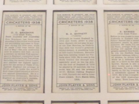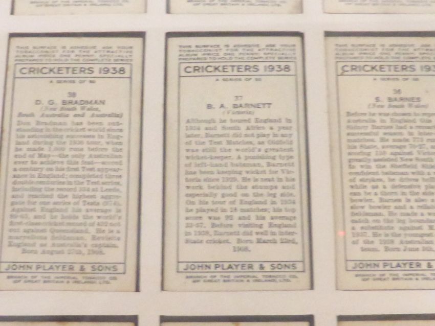 CIGARETTE CARDS 1938 PLAYERS CRICKETERS FULL SET OF 50 FRAMED WITHIN OPEN FACED REAR MOUNTS Framed set of the 50 crickets from Players from 1938. This is the home issue (has ITC notice to bottom of cards) All housed in mounts which are 'open' backed to rear, so backs of cards can be viewed.