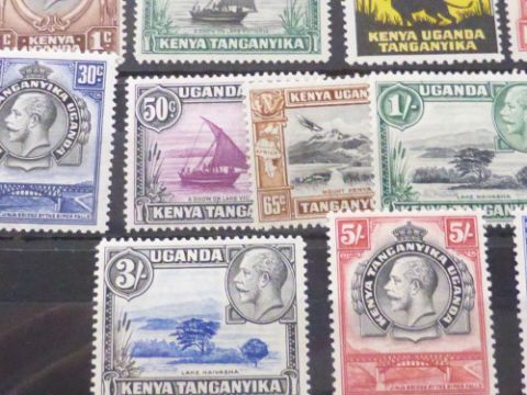 KENYA, UGANDA & TANGANYIKA (KUT) 1935 GV DEFINITIVES SET OF 14 - MINT Card with set of 14 values from the GV issue of 1935-7. Includes a duo of 2 shillings. All mounted mint. Clean backed.