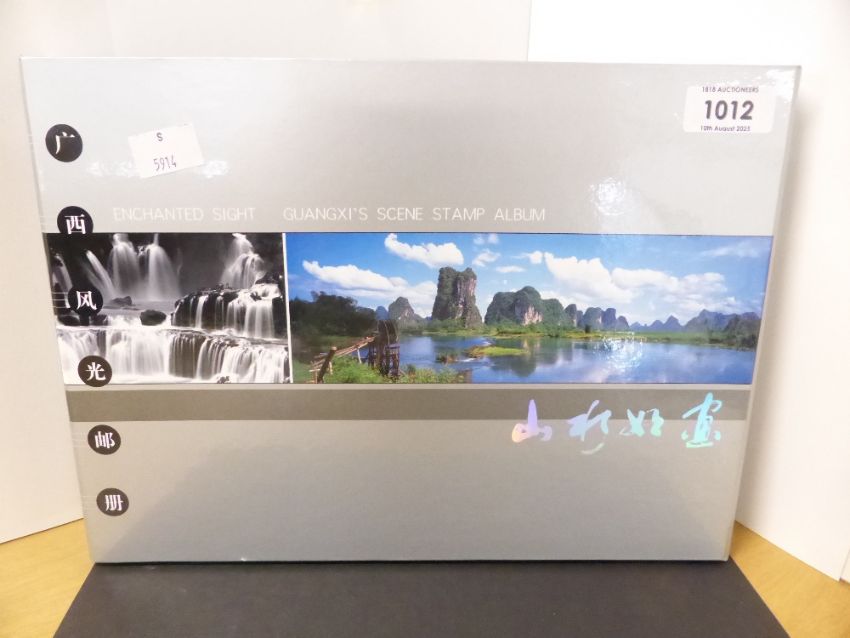 CHINA 2002 ENCHANTED SIGHT GUANGXI's SCENE STAMP ALBUM WITH VARIOUS SETS, M/S ETC Fine publication issued by the Guangxi Provincial Stamps Development Centre, with various flat sets from China from the 1990's and early 2000's. Many of which are T series issues. Mini sheets, odd booklet etc.