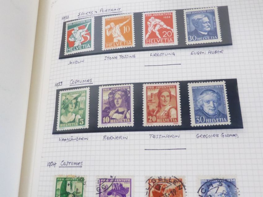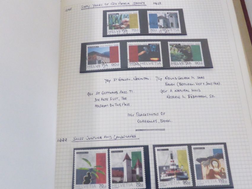 SWITZERLAND PRO-JUVENTUTE & PRO-PATRIA LARGELY COMPLETE COLLECTIONS TO 2020 Pair of albums one with Pro-Juventute material, the other Pro-Patria. Bar a few mini sheets which appear to be not present in both cases collections look largely complete to 2020. The Juventute issues from 1918 appear to be unmounted mint, earlier mounted, with in many cases fine used items tucked in behind the mint values. Pro Patria sees again largely MNH material including some CTO (odd earlier used). Beautiful collection of Swiss Charity material. Viewing recommended.