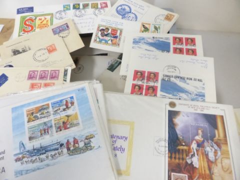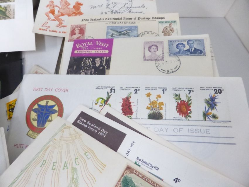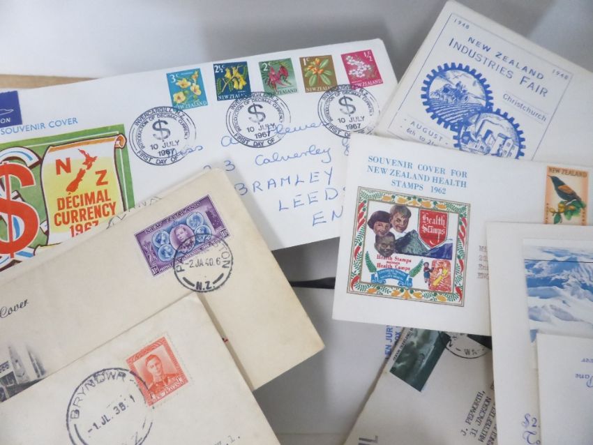 NEW ZEALAND FIRST DAY COVERS & POSTAL HISTORY 1930's-90's Accumulation of first day covers including earlier health issues booklet pane issues with booklets affixed to front, along with postal history material. Good ranges of handstamps etc including Campbell Island etc. In the region of 200 covers.