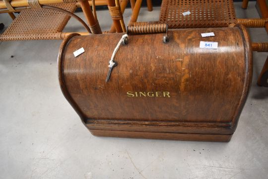An early 20th century Singer sewing machine with carry case, sold together with a tea caddy, (2)
