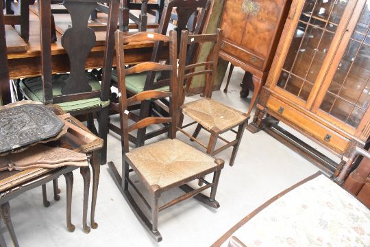 A 19th century rocking chair having slatted back and wicker seat, h95cm, sold together with a similar style chair, (2)