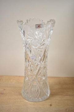 A cut crystal vase having geometrical patterns, h41cm