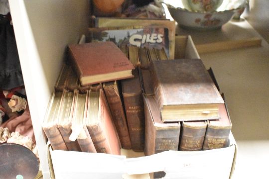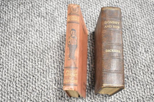 A selection of vintage books including Odhams Press Dickens and Punch library of humour