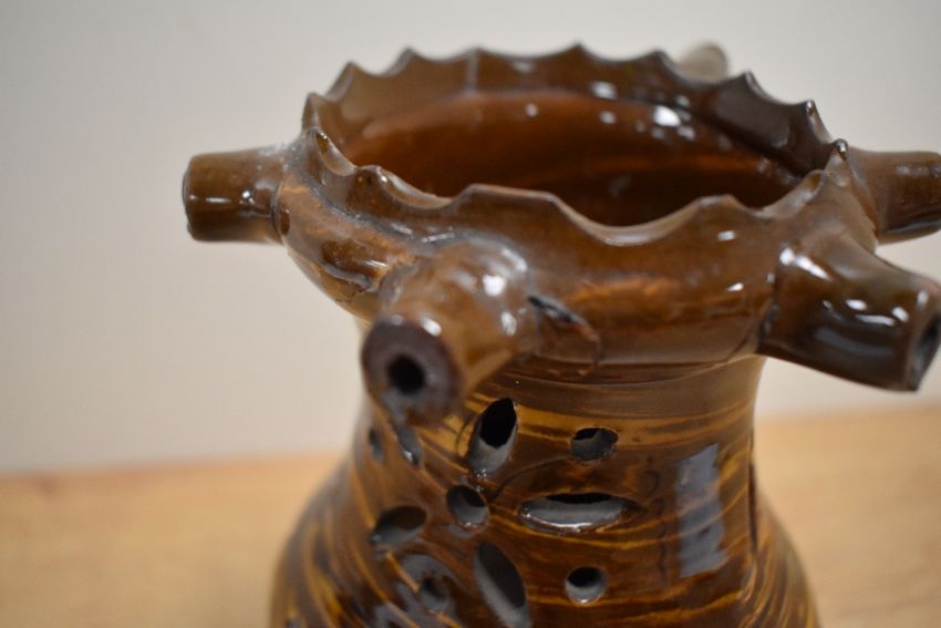 Puzzle jug with damage and repair to handle and two 'nozzles' one with flake chip, additional images uploaded.