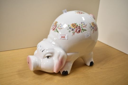 A large pottery Piggy Bank, decorated with foliate sprays with coin slot to surmount, 24cm high approximately