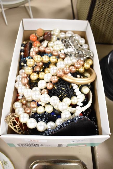 A large collection of costume jewellery, including faux pearls, statement pieces and beaded necklaces