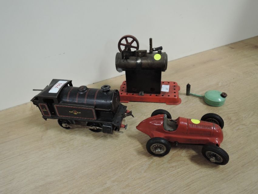Vintage Toys, Mamod Live Steam Stationary Engine missing tray, Hornby clockwork 0 gauge 0-4-0 Locomotive 82011 missing key, , Schuco Studio 1050 clockwork Car missing key (3)