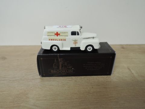 A Brooklin Models The Brooklin Collection 1:43 scale die-cast, BRK 42 1952 Ford F1 Ambulance Jasper County, by permission of the Ford Motor Company, in original box with inner packaging, appears unused