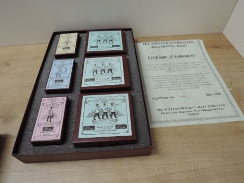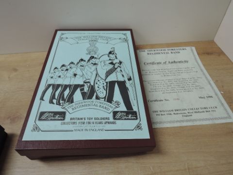 Britains, The William Britains Collectors Club Lead Soldier Sets, 1996 The Sherwood Foresters Regimental Band No 0488 and 1997 The Queen's Colour Squadron The Royal Air Force Regiment No 1021, both boxed with internal packaging and certificates present, very little use (2)