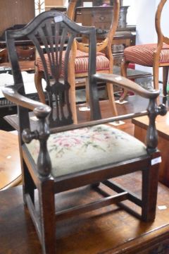 A 19th Century childs low chair having tapestry seat