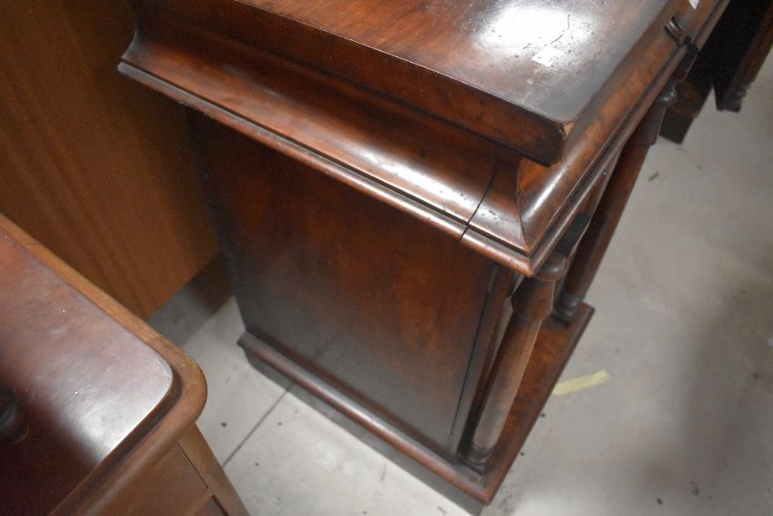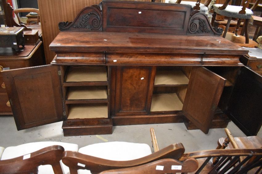 A Victorian mahogany sideboard, having concealed frieze drawer and quadruple cupboards under width approx. 125cm x 189cm x 56cm