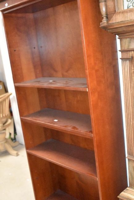 A modern mahogany effect narrow bookshelf, height approx. 181cm