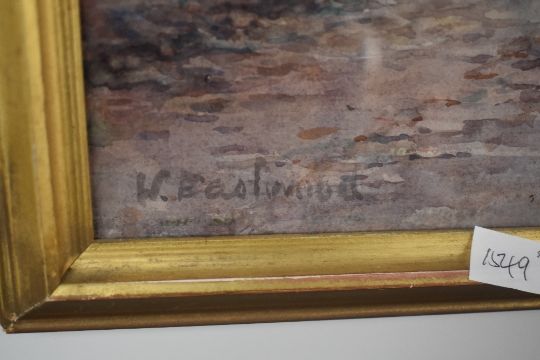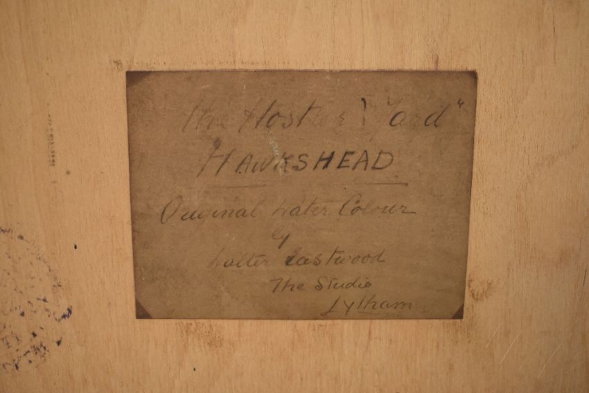 Local interest* Walter Eastwood (British 1867-1943) a pair of watercolours 'The Hostles & Yard, Hawkshead' and 'Main Street, Hawkshead' signed lower right and left, entitled to hand-written label verso, within matching moulded gilt frames, under glass 50.5cm x 35.5cm & 56.5cm x 41cm overall.