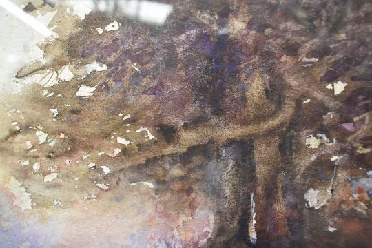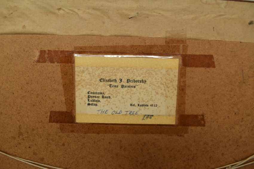 Elizabeth J Priborsky (20th century) watercolour 'The Old Tree' signed lower right, entitled to label verso, within a card mount and moulded frame, under glass 28cm x 23cm & 44cm x 38cm overall.