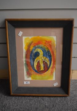 Peter Osbourne (British Contemporary) Watercolour, 'Phoenix' a colourful depiction of a mythical Phoenix bird, signed and dated (2008), entitled and counter signed by the artist verso, within a card mount and moulded frame behind glass 26.5cm x 18.5cm and 45cm x 36cm overall, being sold for charity.