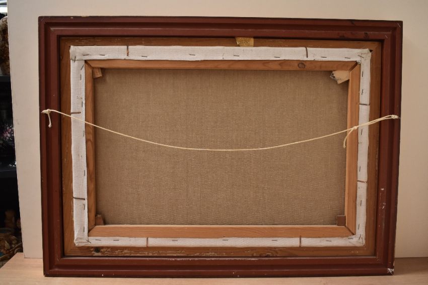 Local interest* Fred McJannet (British 20th century) oil on canvas, local canal scene, signed lower right, within a canvas mounted and moulded gilt and stained frame 39cm x 60cm & 53cm x 74cm overall.