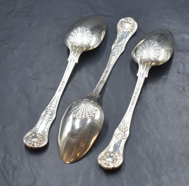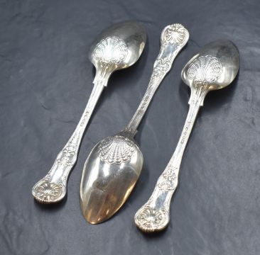 A group of three George IV silver Queen's patterns serving spoons, marks for London 1824, maker Jonathan Hayne, 319g