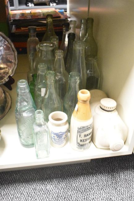 A quantity of vintage bottles, to include a Silloth Mineral Water glass bottle, an Old Fashioned Brewed T. Ramsey Keswick Ginger Beer bottle and a Faulder's Brewery Company Limited Keswick green glass bottle ect (23)
