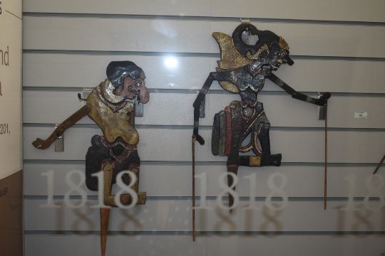 Three Indonesian handcrafted Wayang or puppets, largest h70cm *wayang puppets have been a part of Indonesian culture for hundreds of years. Each part of Indonesia has its own puppet, for instance, West Java has its wooden puppet, central and East Java have leather and Bali have dancing puppets